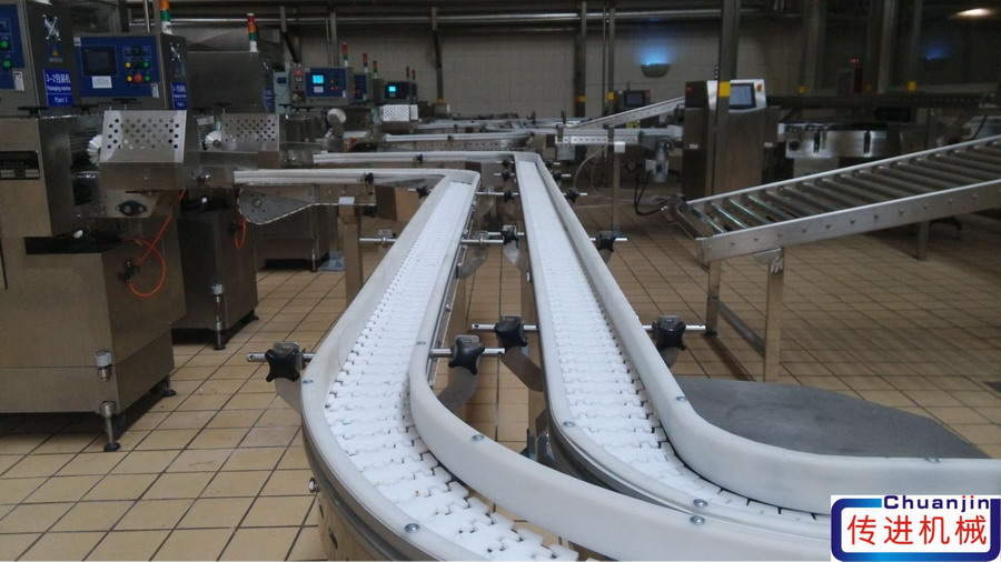 傳進牌模塊式輸送機相比較其他類型輸送機,模塊網(wǎng)帶鏈輸送機具有以下特點: