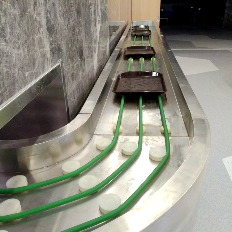 傳進(jìn)傳送帶表面無(wú)任何衛(wèi)生死角,便于清潔,使得餐廳,傳送帶干凈整潔,洗碗同內(nèi)傳送帶能夠滿足廚房衛(wèi)生防疫的要求。