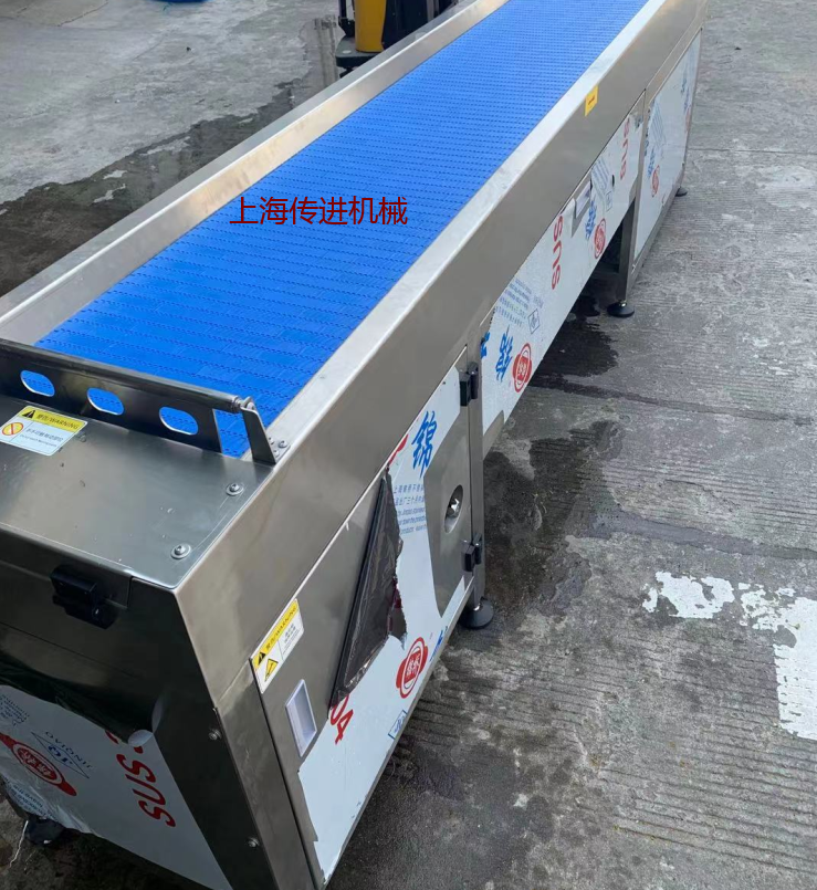 上海傳進機械餐盤輸送機結(jié)構(gòu):由全不銹鋼板整體機架結(jié)構(gòu).進口食品級輸送帶.無級調(diào)速傳動機構(gòu).和自動清洗裝置組成。
